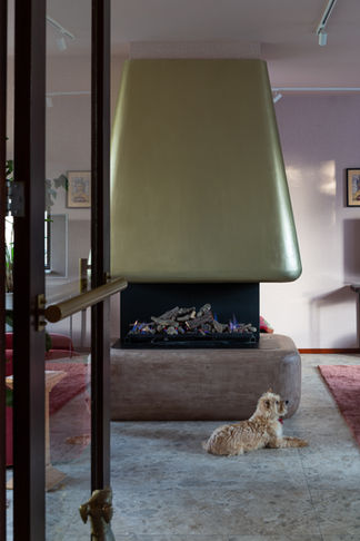 Mid-century huis compleet verbouwd maar wel met respect voor de tijdsgeest. Kleurrijk maar rustig en als eye-catcher de gouden openhaard. De keuken in groen was een gedurfde keuze die past bij de perssoonlijkheid van de bewoners. Alsmede de groene slaapkamer met op maat gemaakte kledingkasten.